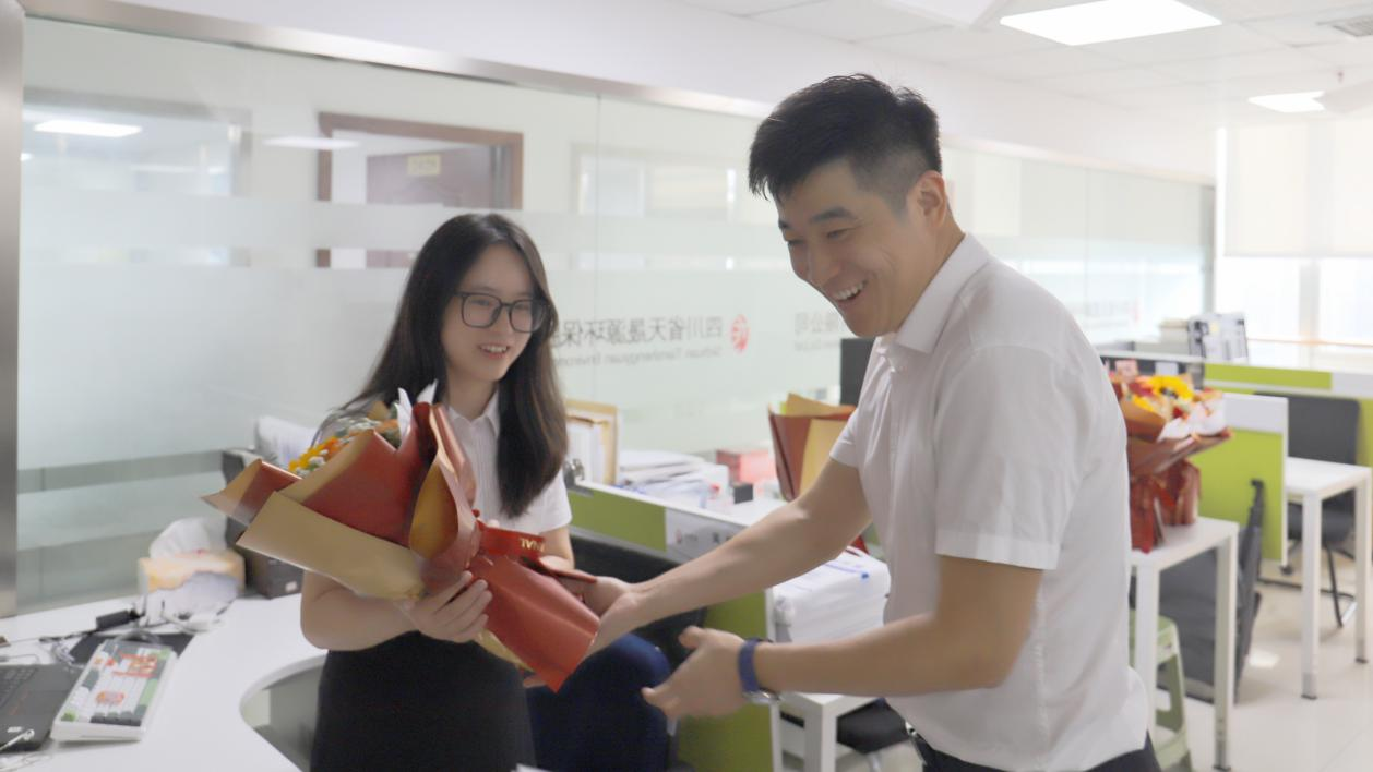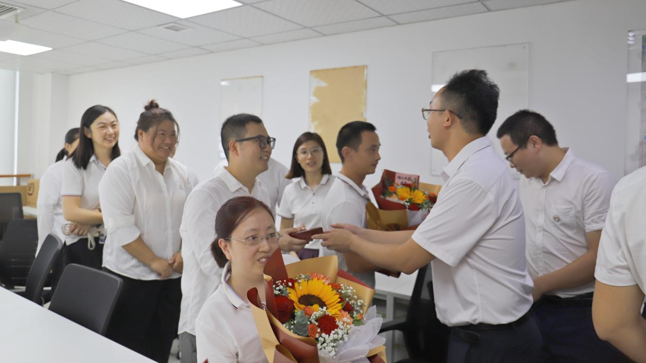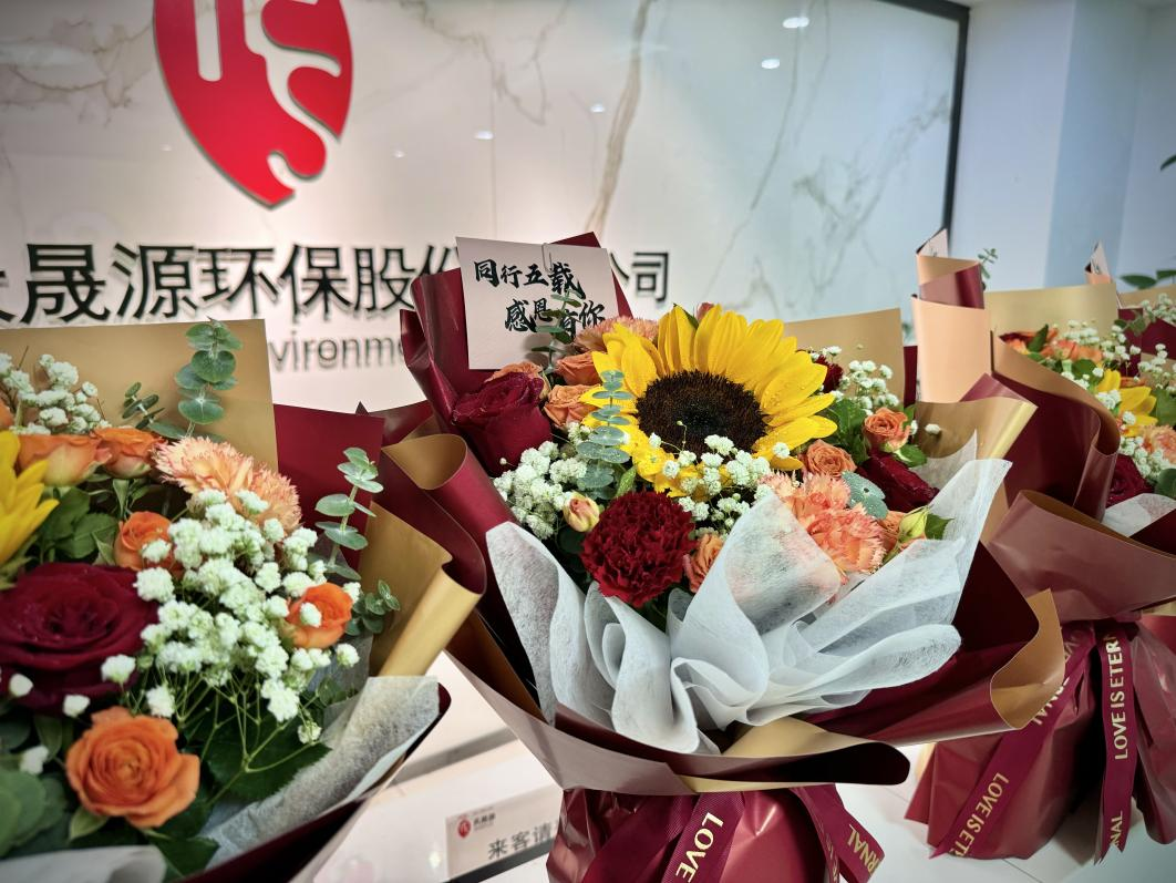 9月27日上午,天晟源环保主要领导李大有、张恒、姚梦代表公司向司龄满九周年员工赠送与鲜花,向新满五周年员工赠送纪念银币,一方面感谢他们的辛勤付出与忠诚坚守,另一方面勉励他们再接再厉,在今后的工作中取得更好的成绩。