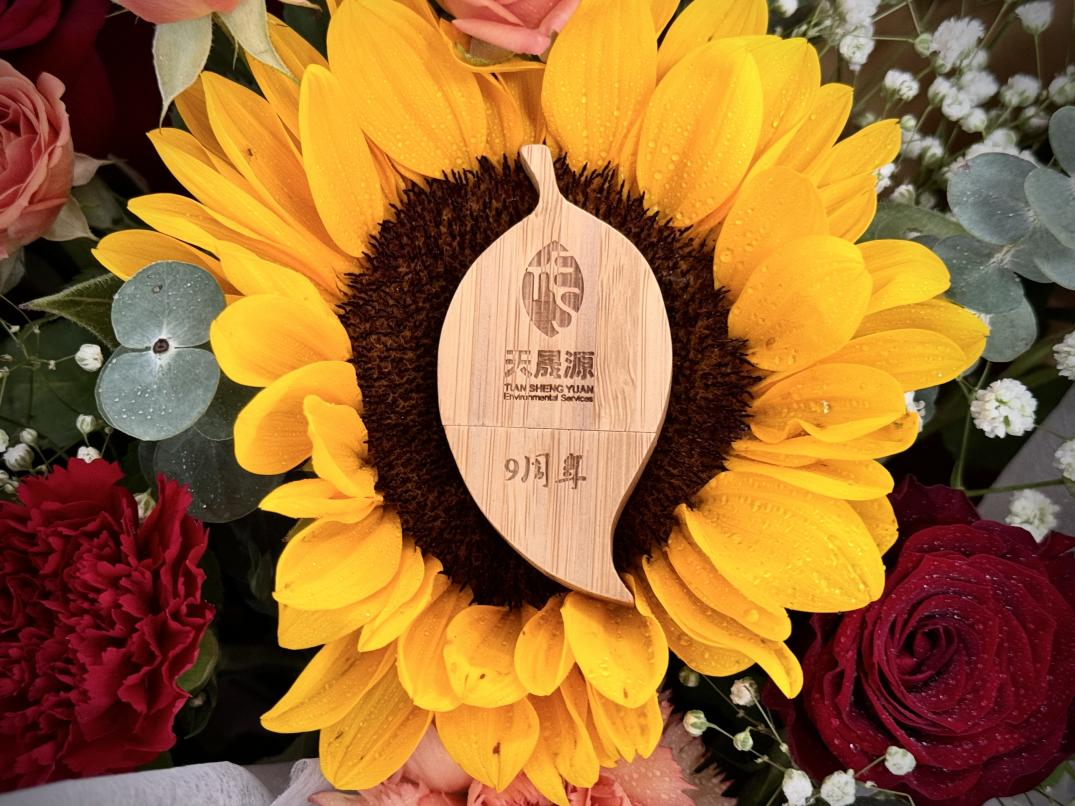 9月30日,天晟源环保向员工赠送木质“树叶”造型的九周年纪念U盘,代表了天晟源环保生机勃勃的活力,也同时公司将如同青枝绿叶般蓬勃向上,在未来不断发展壮大、枝繁叶茂。